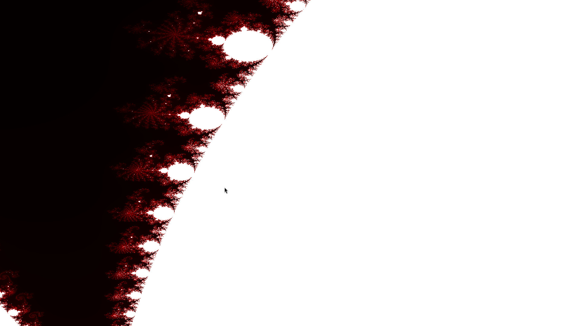 För snart ett år sedan skrev jag ett program för att utforska Mandelbrotmängden. Denna skrev jag i RENODLAD C med OpenGL (Ooooh vad ni nu måste känna er som riktiga posers)! Den har inte alltför många funktioner men den är SNABB och det går att flyga runt och utforska mängden ganska bra. Sedan har mitt program problemet att när man zoomar in nog så har floatsen i vertex shadern inte nog med precision, vilket är ganska surt. Om någon har någon lösning på detta mejla gärna mig. Här är koden för shadern